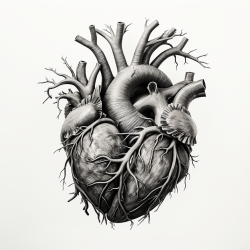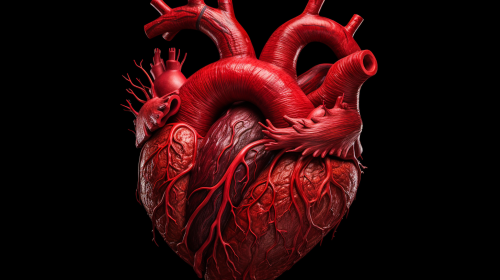 black background, one hand stretches out from the darkness holding a human heart, medical style, detailed.