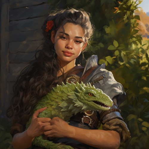 Create a highly detailed, full-body portrait of Gol'uk Dura-Thruk Gra-Tar'Uk, a 7-foot-tall half-orc warrior in a dramatic comic book style. The character stands proudly atop a misty mountain, exuding a rugged and charismatic presence. Character Details: Attire: He wears a weathered white linen shirt with a leather vest over it, both showing signs of wear and tear. His jeans are dirty and rugged, paired with sturdy cowboy boots. A large gold belt buckle with a golden wagon wheel emblem prominently features on his belt. Hat: A cattleman cut cowboy hat with attached horns from a beast he killed, adorned with a hat band featuring colorful feathers in the center. Weapon: He wields a massive great axe that doubles as a magical lute, with the handle intricately designed to act as the neck of the lute. The axe’s head should look both menacing and musical, blending the aesthetics of a weapon and an instrument. Physical Traits: Gol'uk's skin is a pale grey olive green, and he has a muscular build. His bottom teeth protrude like tusks in a crooked, charismatic grin. Pose and Expression: He stands in a powerful pose, reflecting strength and resilience, with a crooked grin that reveals his tusk-like teeth. His stance should convey both his warrior prowess and bardic charm. Background: The scene is set on a misty, rugged mountain with stormy skies above, emphasizing his connection to the elements and his epic journey. The atmospheric lighting should highlight the dramatic, high-fantasy mood of the setting. Stylistic Influences: The illustration should blend the styles of Brian Michael Bendis for dynamic composition, Chris Bachalo for expressive character design, James Bama for vibrant, cinematic color schemes, Frank Frazetta for epic fantasy elements, Artgerm for detailed and [...]
