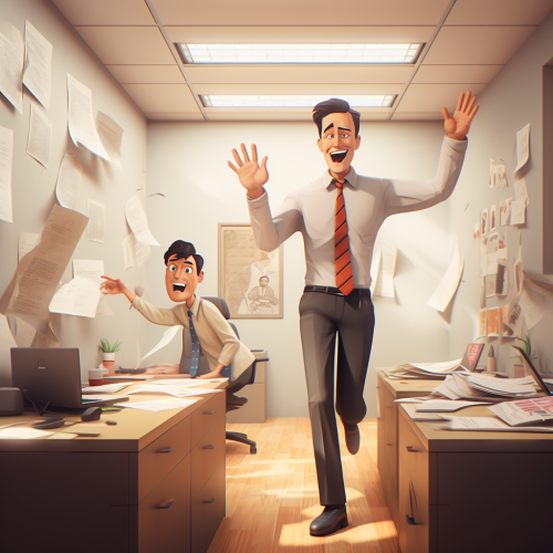 an executive woman is screaming at a long interminable line of exhausted office workers carrying their briefcase standing in a cue , outside an office building , rainy day , 24 mm, realism image, cinematic style , hyper-realistic, highly detailed, daytime scene, atmospheric lighting, rich in detail, photography, high quality, --ar 16:9 --v 6.1