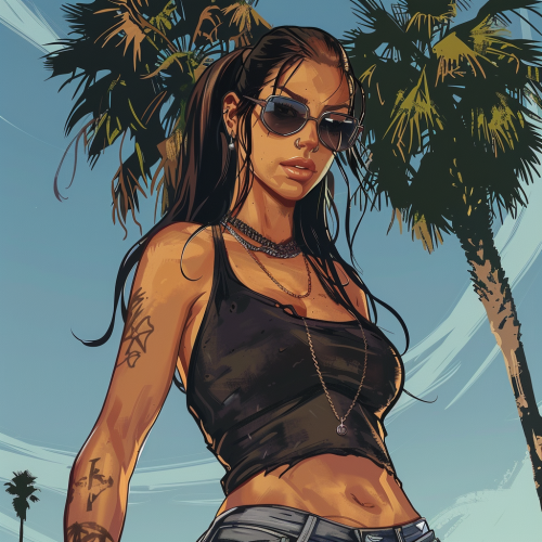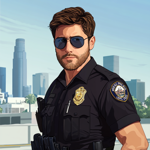 A tactical person dressed in sleek black gear, standing confidently beside a doctor in a white coat, a farmer in rugged work clothes, and a businessman in a sharp suit, all facing the camera, set in the vibrant and exaggerated Grand Theft Auto V art style. The tactical individual has a focused expression, exuding strength and readiness, while the doctor appears caring, the farmer looks determined, and the businessman exudes confidence. The backdrop features a dynamic urban landscape of Los Santos, blending elements of nature and city life. The scene is filled with bold outlines, vivid colors, and a cinematic flair, capturing the diverse and energetic atmosphere of GTA V.
