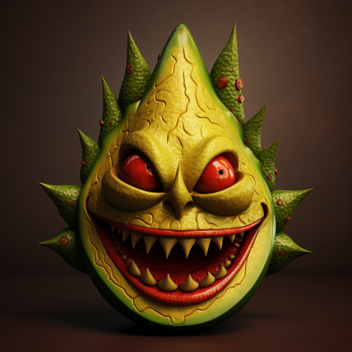 isolated on black background, an angry avocado holding a sign "MANGEZ DE LA VIANDE !", the avocado shows its its angry tongue, extraordinary & funny pixar style, isolated on black background. art by mierAI --ar 1:1 --stylize 1000 --niji 6