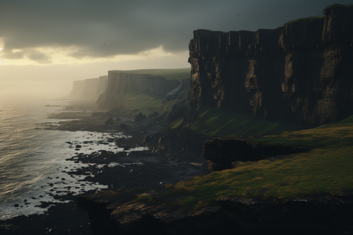 flat surface, over looking cliffs in the distance, cinematic lighting --ar 3:2