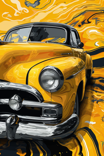 car in the style of a bright yellow and black op-art poster. --chaos 20 --ar 60:90 --style raw --stylize 250 --v 6.0