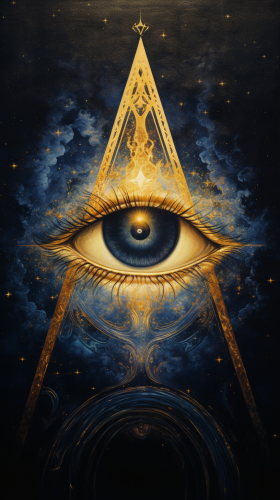 A digital art image of a large all-seeing eye, surrounded by intricate geometric patterns and ancient symbols, The iris is a swirling galaxy, and the eyelashes are made of celestial bodies,transparent background around the eye and the eyelashes