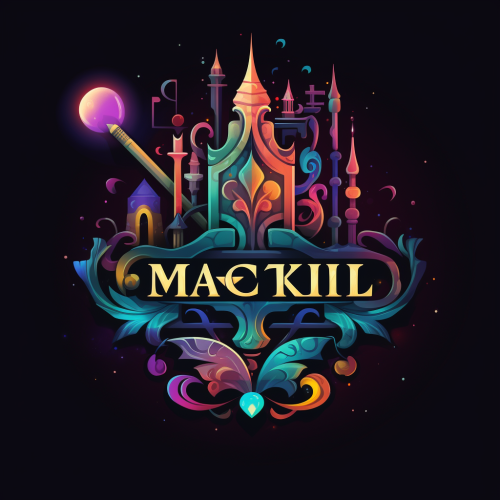 Logo for a digital artist, magical stylus working on ipad, 2D vector, medievalinspired typography, style of Chip Kidd, vibrant jewel tones, whimsical and intriguing