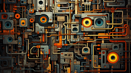 A vibrant, high-tech cityscape with a central CPU core, surrounded by a network of interconnected hardware components, all seamlessly working together as the CPU expertly manages and coordinates their tasks, ensuring a smooth and efficient digital ecosystem.
