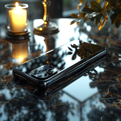 an attractive woman in her thirties downloading an app on an iphone 15 smartphone. She is sat in a modern apartment and camera is over her shoulder looking at the phone. --ar 4:5 --v 6.1