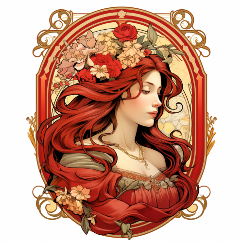 anne boleyn art nouveau alphonse mucha floral red tudor flat graphical illustration