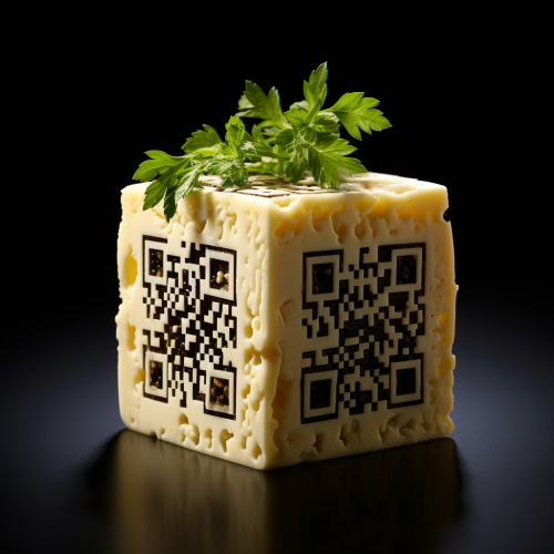 An imaginative photo. A mobile phone scanning a QR code. From the screen of the phone, a digiftal content (3D model) is emerging. No human. All elements are floating. Mobile phone screen is not transparent.