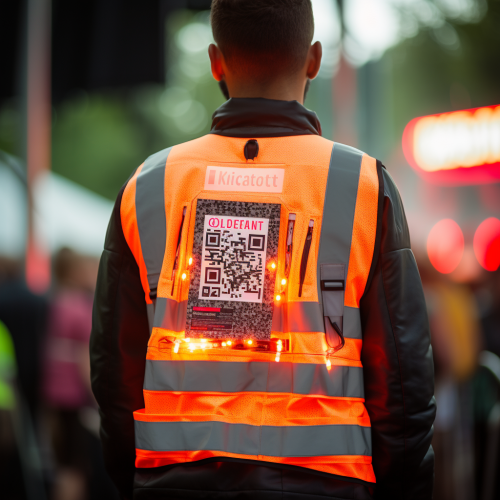 a kitkat ed security vest from the back with a QR code on --v 5.2