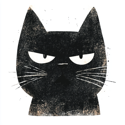 small clipart angry kitty, in the style of nursery art, non uniform shapes, dusty piles, in the style of minimalist graphic designer, bold shapes, subtle tonal range, tinycore, icon, sophisticated woodblock, whimsical minimalism, tinycore, isolated on white background