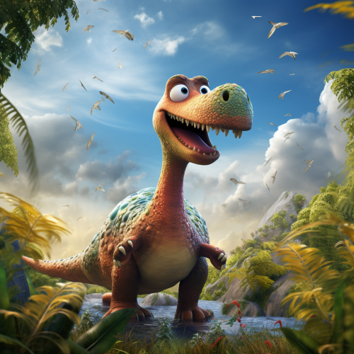 In the forecast, there is a huge dinosaur name Dodo,looked intimidating but was actually very friendly and intelligent,For kid's book 8-12, 3d render illustration,--ar 16:9,--seed 649037181