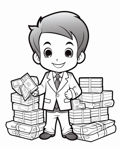 coloring book for kids, money, black and white, white background, 2D, flat design, cartoon style, minimalist style, low detail, no shading --ar 9:11