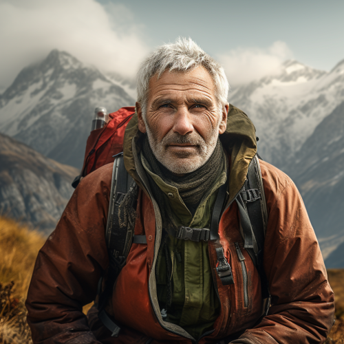 Hiking man 2D flat illustration t-shirt design, mountain selfies, --no mockup --s 200