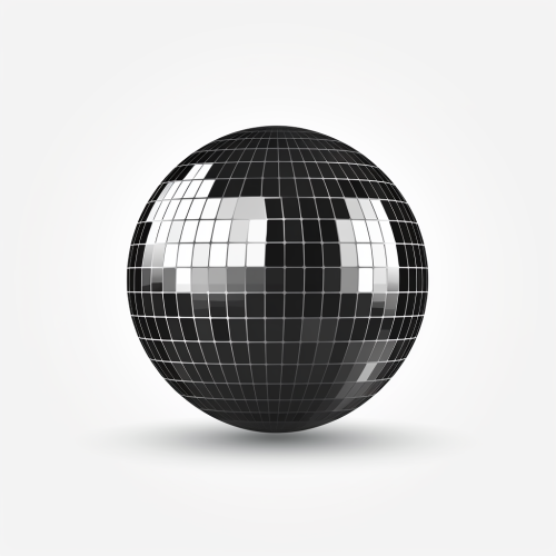 a black svg disco ball, illustration, vectorized, minimal, black and white, white background, simple --v 5.2 --s 150
