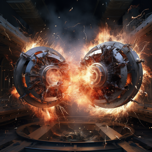 hyper realistic Two super heated quay stars smashing in a hyper collider