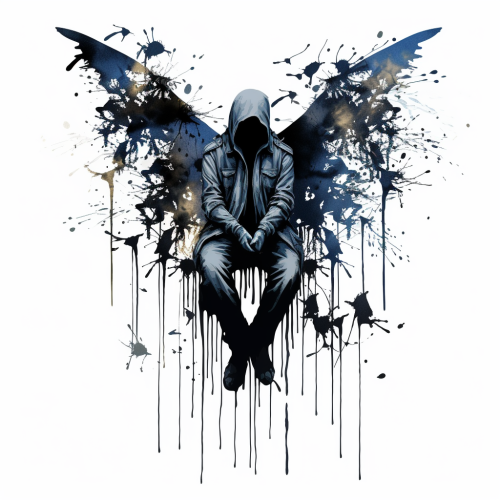 full body side view beautiful winged inspiration fairy, rorschach inkblot