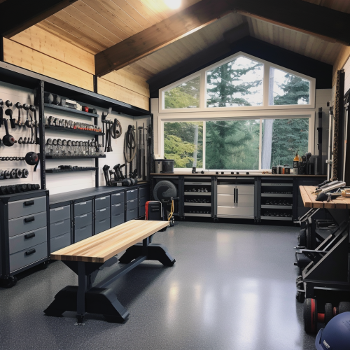 Garage Gym Ideas, Exercise Equipment, home garage gym, garage work bench, concrete floor, design garage, workout room
