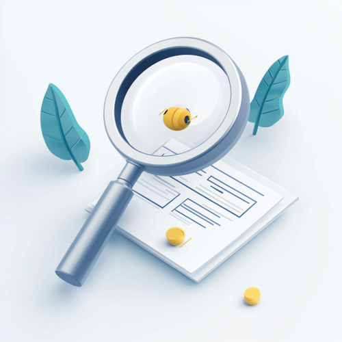 Create a modern and clean icon symbolizing a Quality Assurance (QA) environment. The design should feature a magnifying glass hovering over a checklist or a bug symbol, indicating testing and debugging. Use a light, neutral background with contrasting colors like blue, green, and yellow to highlight the elements. The magnifying glass should have a slight 3D effect, and the checklist or bug should be minimalistic but clearly visible. The icon should communicate precision, attention to detail, and reliability, with a polished, professional look.