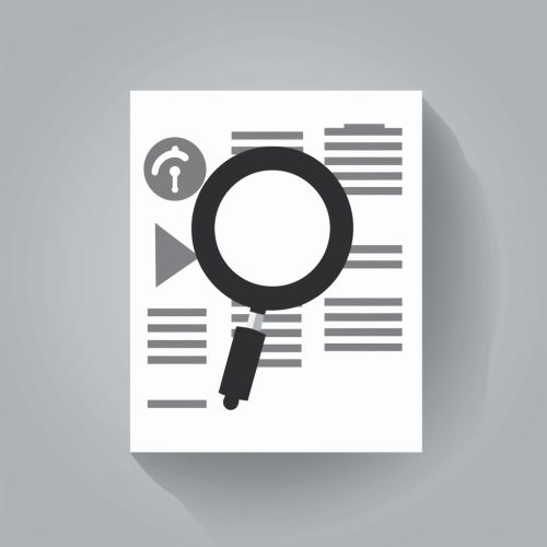 A minimalist, monochromatic icon representing document review. The icon should show a magnifying glass over a sheet of paper, designed in a simple and clean style with flat design principles. Use a single color for the design. --v 5.0 --ar 1:1
