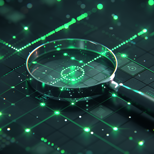 A cinematic shot of an isometric camera view of a straight line with a single dot being outside the line, inspected by a magnifying glass --v 6.0 --s 250 --style raw