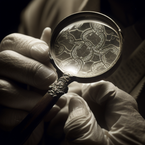 Dermatologist using a magnifying glass to examine the skin of a patient.Clear and vivid image detailed, realistic high definition 4k, 16-35mm lens, f1.8 --ar 9:16 --q 2