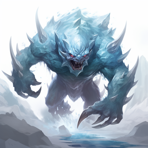**Cute anime or cartoon style image of a fluffy, fox-like creature in wizard robes. The fox like creature is harnessing ice magic in their hands. The landscape is a Icy and cold environment with large mounds of snow and blue colored ice.