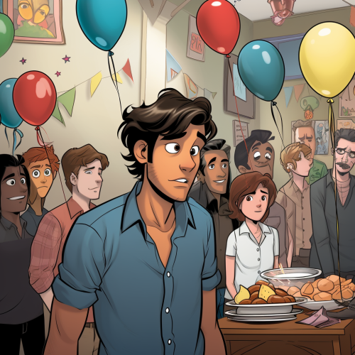 modern comic book style art . an african american college senior at a frat party, he looks charming and a little letcherous. --ar 2:3