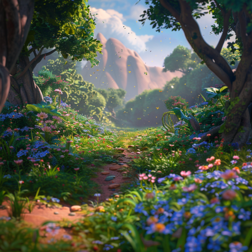 Pixar forest pedestal colorful bright