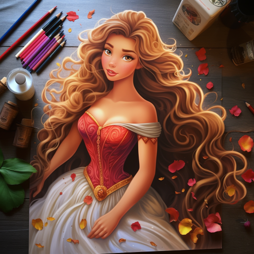 disney princess Aurora from sleeping beauty ice skating on a frozen lake