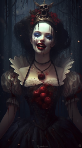 disney snow white princess reimagined in a nightmarish horror disney style --ar 9:16 --v 5.1