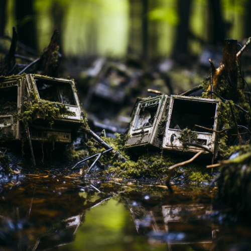 abandoned place taken over by nature with red stains on the floor --ar 16:9 --niji 5 --style scenic