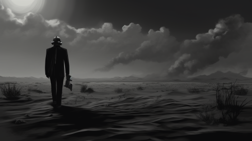 a distracted man wearing a gas mask watching a steampunk screen:: in a warehouse filled with containers::1.5 Post-apocalyptic Colorgrading, detailed, 8k, photorealistic, shaders, lumen. --ar 16:9 --v 5.1