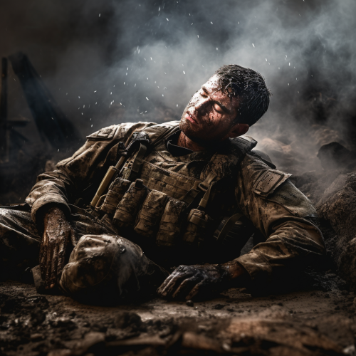 In Flanders fields the poppies blow Between the crosses, row on row, That mark our place; and in the sky The larks, still bravely singing, fly Scarce heard amid the guns below. We are the Dead. Short days ago We lived, felt dawn, saw sunset glow, Loved and were loved, and now we lie, In Flanders fields. Take up our quarrel with the foe: To you from failing hands we throw The torch; be yours to hold it high. If ye break faith with us who die We shall not sleep, though poppies grow In Flanders fields. ::1 ultra-realistic mega-defined 64k::1 --ar 4:3