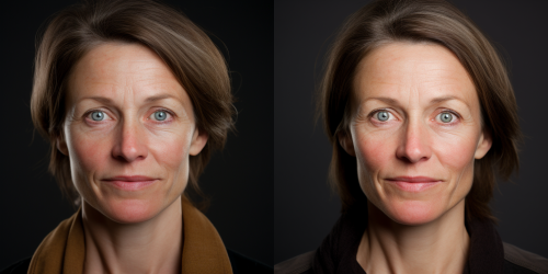 gere uma imagem ultra realista. a imagem deve ser divida no meio, de um lado de uma mulher triste, frustrado, com um olhar profundo sem rumo, ja no outro lado essa mesma mulher deve estar sorrindo, feliz, orgulhasa e confiante