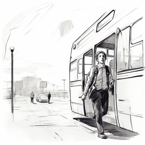 bus stop on the street, day summer, people stand up, --ar 16:9