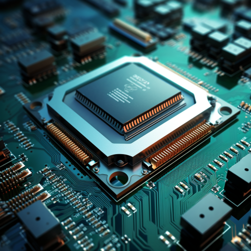 Hyper realistic illustration of a computer motherboard, inside a computer, from the future. Photo realism, cinematography, 4k --ar 9:16