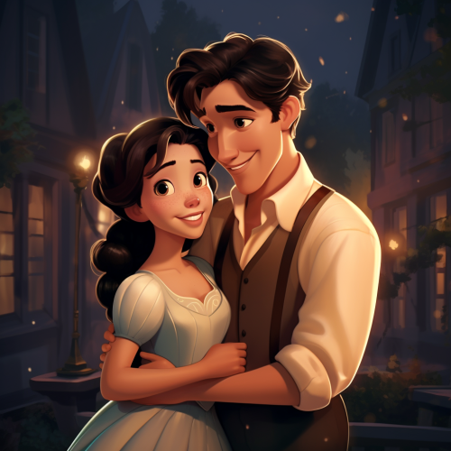 digital template of a neclace for couples, black background, disney style, front view --ar 1:1 --s 50