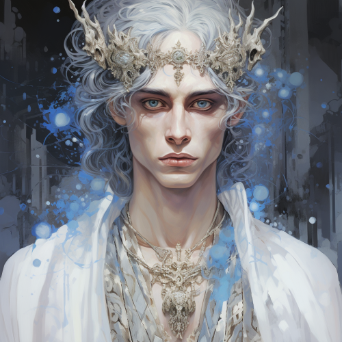 Kaelios, a god of a new mythology with the power of creation, stands majestically on top of a mountain in an unknown and inaccessible divine realm. He has a hardened and mischievous expression, embodying the essence of a powerful and enigmatic deity. His arms are extended outward as he molds humans from clay or light, the figures emerging and taking shape in his hands as if they were being sculpted by divine will. The scene is illuminated by dramatic flashes of divine lightning, casting stark shadows and adding intensity to his act of creation. The background is a vast, otherworldly landscape with swirling clouds, celestial bodies, and distant ethereal structures that defy earthly understanding. The overall atmosphere is mysterious and mystical, evoking the grandiosity and awe of ancient mythologies like Greek and Egyptian. The lighting is intense and contrasts sharply with Kaelios's features, emphasizing his power and control. The image is in a 16:9 ratio, capturing the expanse of this divine setting and the dramatic moment of creation. --ar 16:9