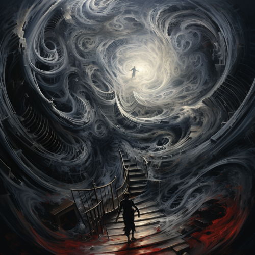 the feeling of realising that life lacks inherent meaning, spiralling oneself into a maelstrom of madness or resolve