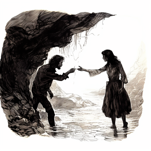 a hand sketched drawing of Jesus performing a miracle. --ar 2:1