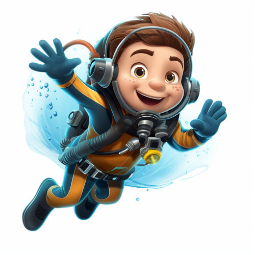 girl who is half angler fish, in full diving gear with a harpoon, underwater, fish girl, dressed in diving gear, steampunk, in the style of anime art