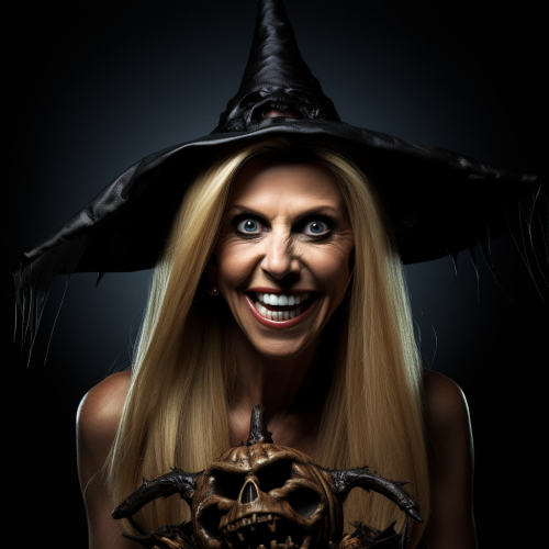 a old hag witch is disapproving of Halloween, looking loathed, d&d, fantasy, photorealistic, dark ambiance