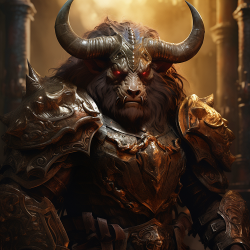 forgotten realms scholarly Minotaur paladin. Surprised expression. Axe weapon. Best photo quality