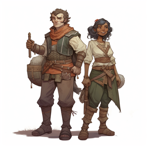 female hippy halfing, short curly brown hair, D&D character, style of clyde caldwell