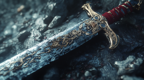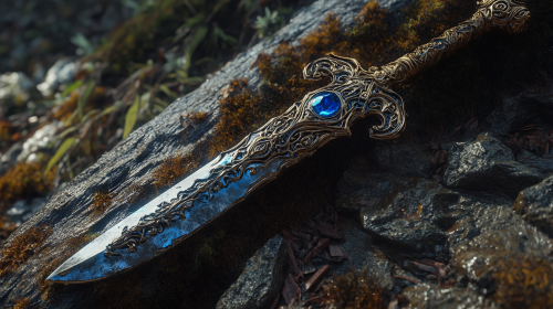 rare medieval magic weapon, d&d 5e, loot, 4k, vivid, 4k ultra detailed, 4k cinematic, 4k hyper detailed, 4k ultra realistic, 4k hyper realistic, 4k photorealistic, --ar 16:9 --v 6.1