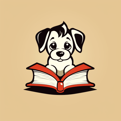 make me a logo for a book sharing company called "Dog-eared Books". use negative space to show the dog with one ear flopped downwars while reading inside a book. cartoon charatacter, simple lines, charactature