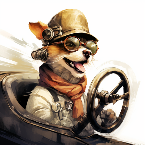 cartoon illustration of a dog driving a vehicle, 2023, Brian Kesinger style, photorealistic hyperbole, ravishing portraits, no headgear, no glasses, rtx on, vivid facial expression, 8k, white background --v 5.2