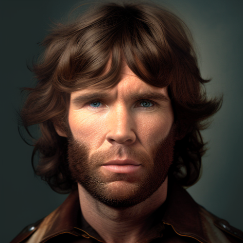 A realistic headshot photo of Chuck Norrison, a mixture of Chuck Norris and Jim Morrison --v 4