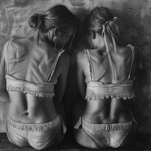 detailed conte drawing of two female bodies by gottfried helnwein --v 6.0